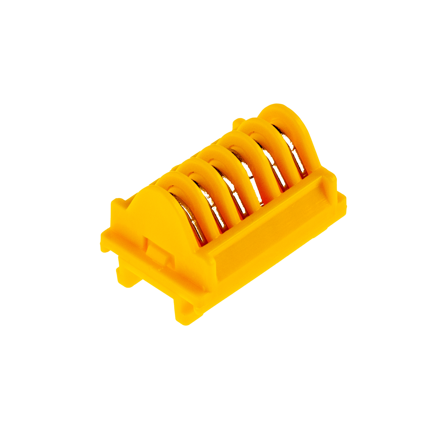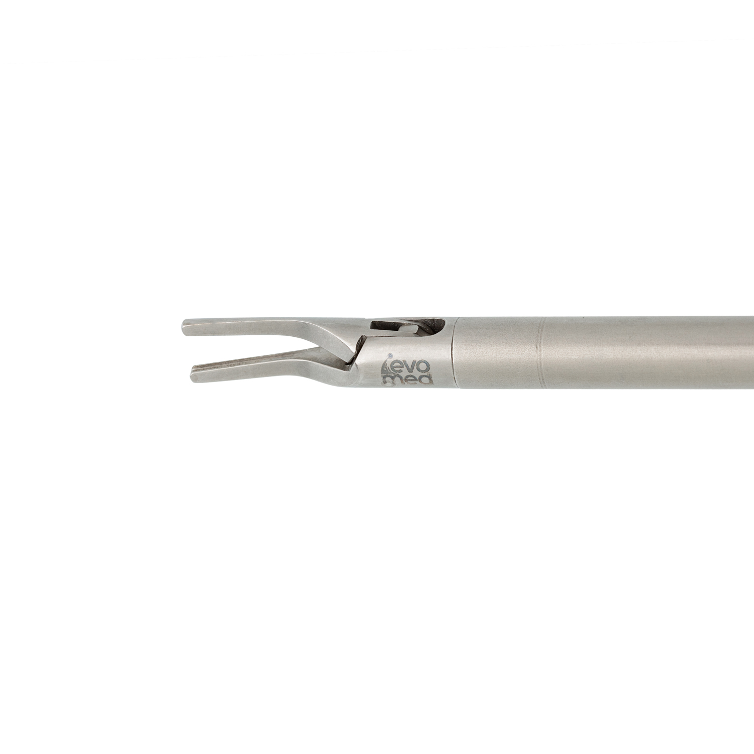EVOCLIP titanium metal clips employ a distal closing mode of action that encloses the vessel completely before final closure of the clip thus minimizing extrusion of tissue from the closed clip. Grooves are cut on the inner and outer surface of the clips to enhance clip security on vessel and in the jaws of the clip applier respectively. The clips come in a sterile cartridge comprising 6 clips and color are coded: yellow, green, white or blue corresponding to sizes large (L), medium large (M/L), medium (M) and small (S) respectively. Clips are used to clamp or occlude vessels or other small tubular structures in order to avoid bleeding after transection of these structures.