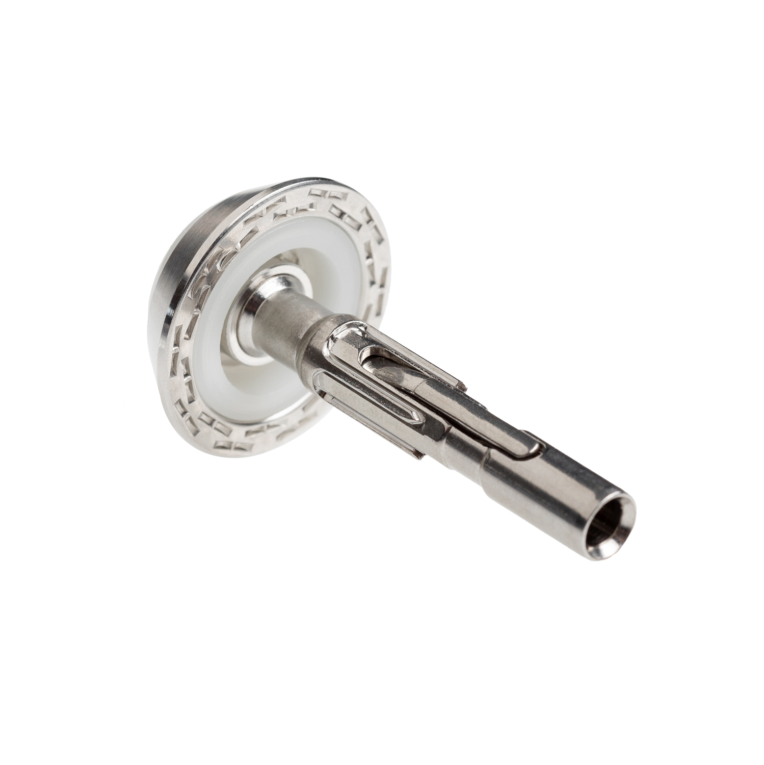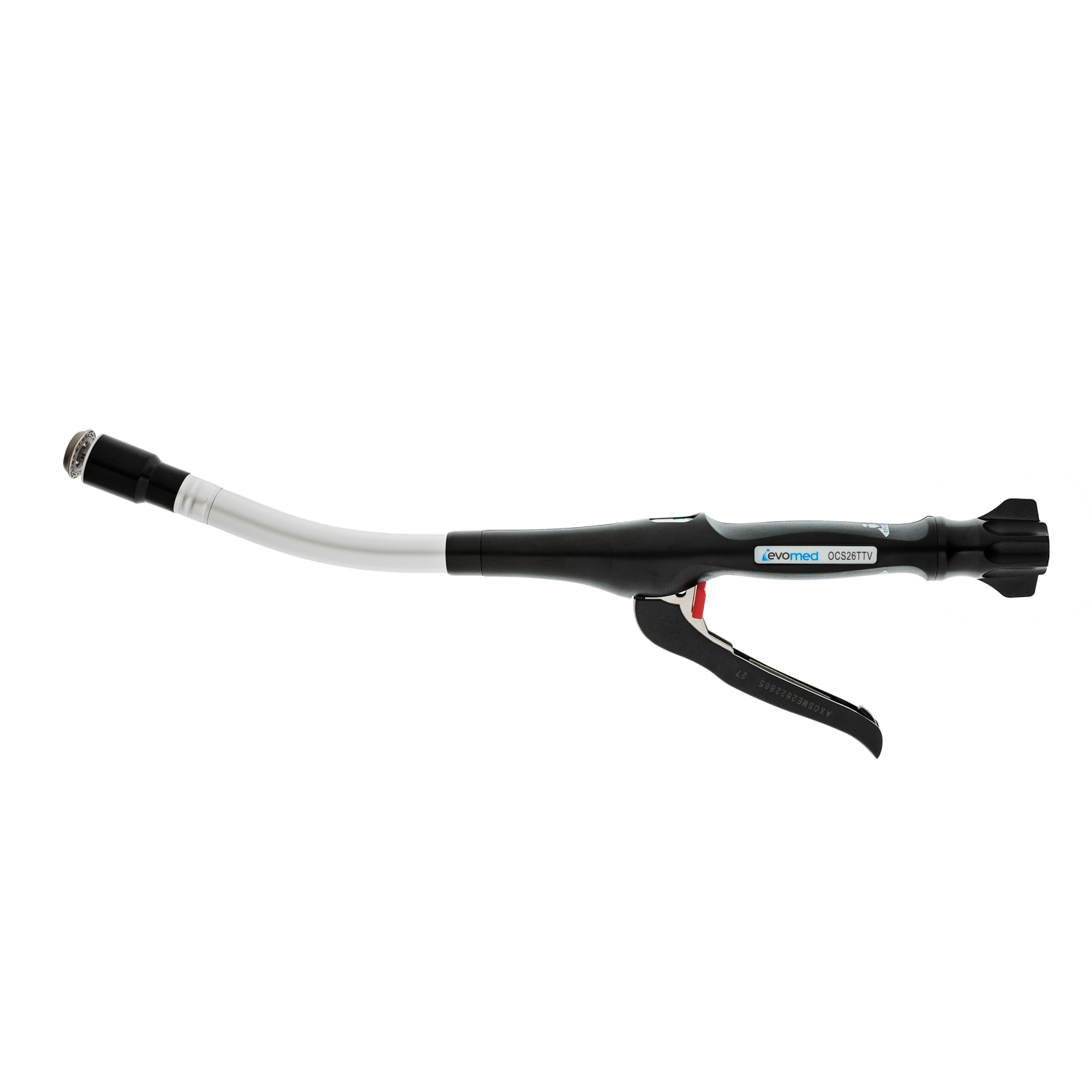 TheEVOMEDICALdisposable Circular Stapler (OCS-V) places a circular double staggered row of titanium staples, resecting excess tissue and creating a circular anastomosis. The anvil may be separated by fully winding out the shaft using the black adjustable wingnut knob and detaching according to surgical technique. The stapler may only be fired once and may not be reloaded.