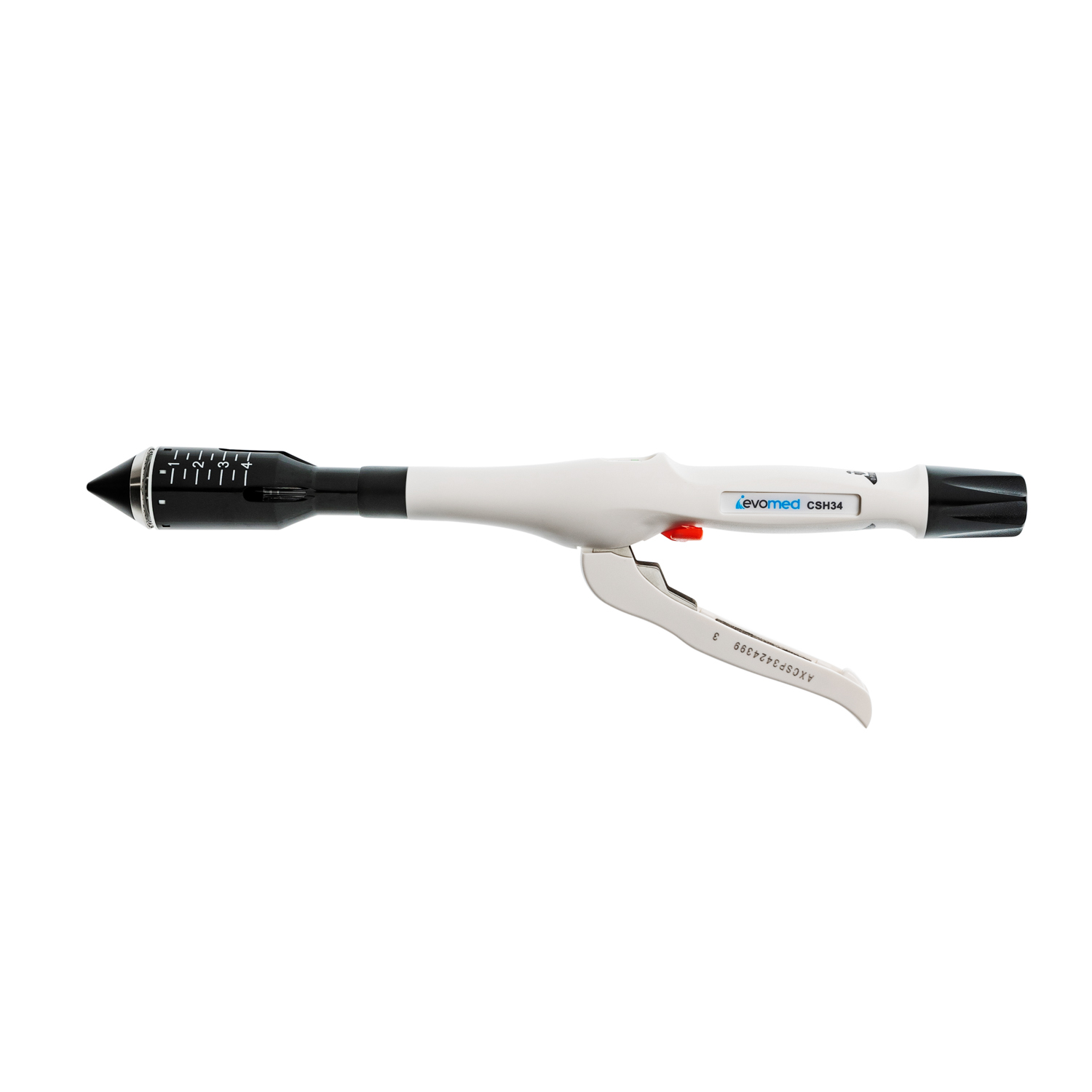 TheEVOMEDICALEVOLAPSE stapler and accessory set for Prolapsed haemorrhoids (CSH) comprises a disposable circular stapling device, available in 2 diameter sizes, 32 mm and 34 mm, that delivers a circular double staggered rows of titanium staples, resecting excess tissue and creating a circular anastomosis. The stapler comes as part of a set containing the circular stapler suture threader, circular anal dilator and nurse string anoscope.